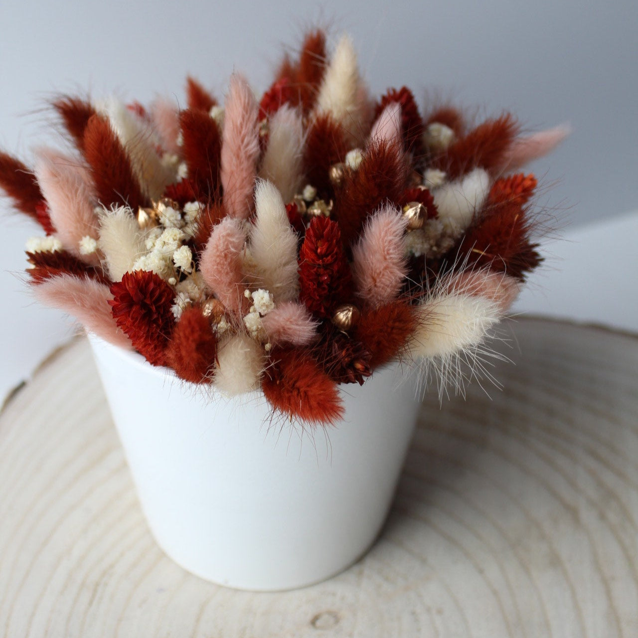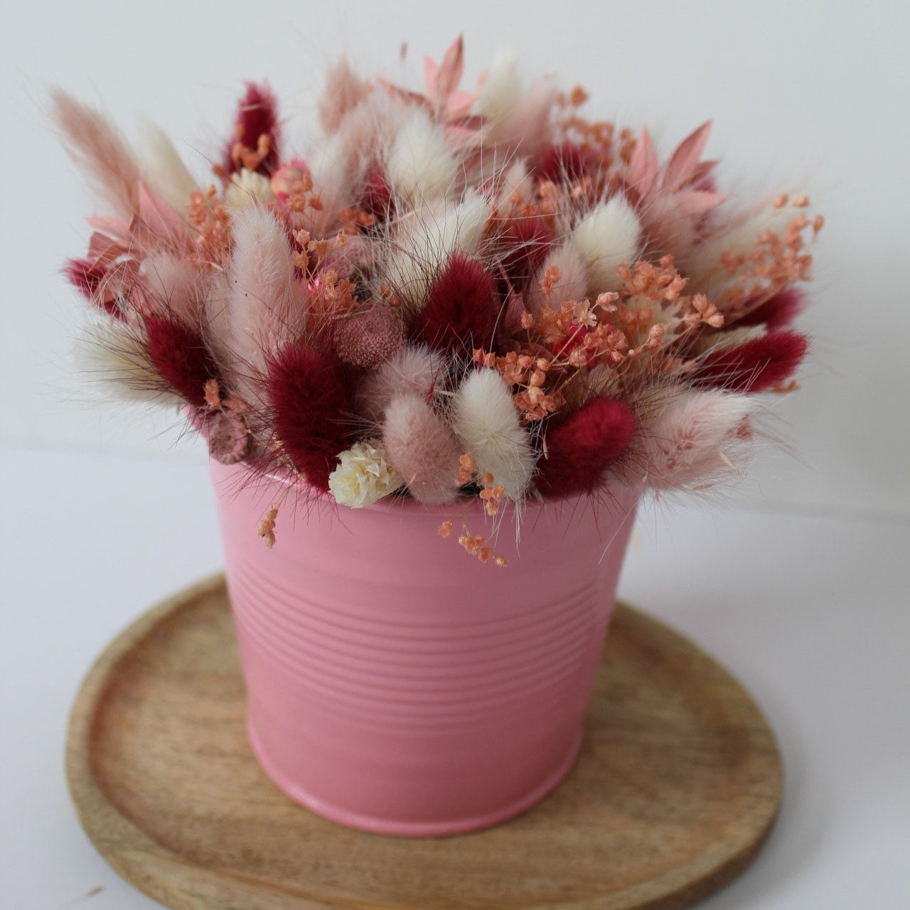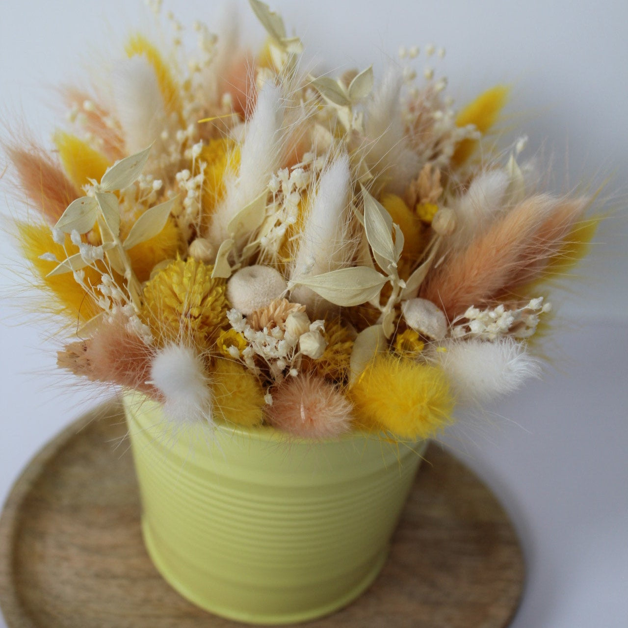 Bloemenpotje met droogbloemen, een sfeervol, handgemaakt arrangement in een stijlvol potje, gevuld met zorgvuldig geselecteerde gedroogde bloemen. Een vrolijke, kleurrijke toevoeging aan elk interieur en perfect als klein cadeautje. Onderhoudsvrij en langdurig mooi – een fleurig detail dat nooit verwelkt.