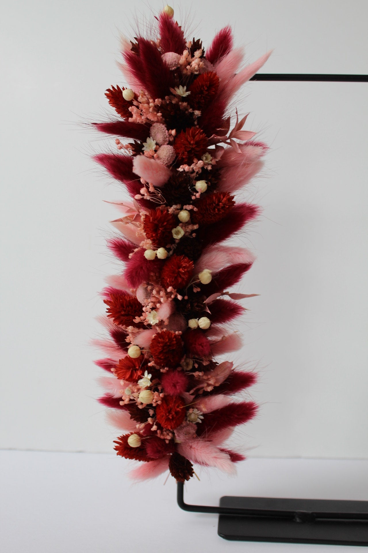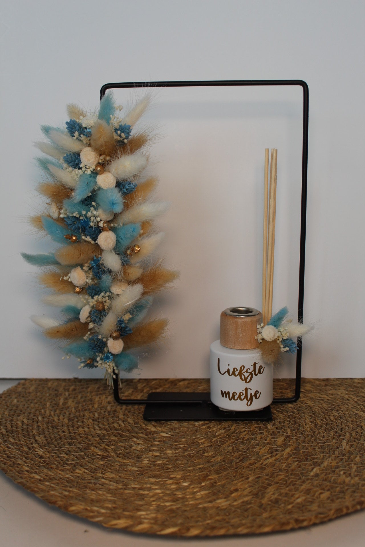 Rechthoekige flowerhoop met de hand gemaakt op een strak, rechthoekig metalen frame en afgewerkt met prachtige gedroogde bloemen. Deze moderne variant van de klassieke flowerhoop is een echte blikvanger in elk interieur. Stijlvol, duurzaam en perfect als wanddecoratie, cadeau of als unieke touch op een speciale gelegenheid.